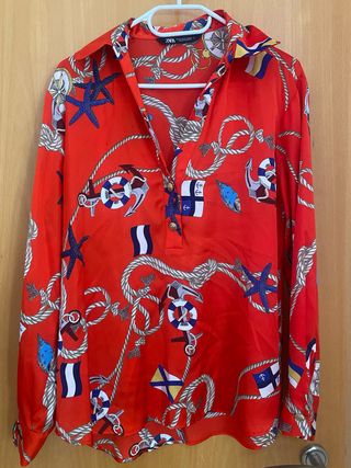Blusa Zara Seda Estampada Náutica Talla M