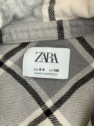 Camisa de cuadros para niña de la marca ZARA. - Diseño a cuadros en tonos grises y blancos. - Cuello camisero. - Cierre de botones. - Dos bolsillos en la parte delantera.