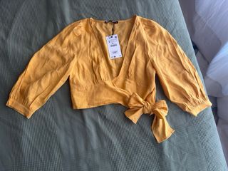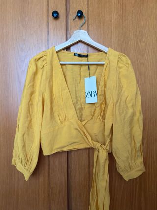 Top Zara amarillo cruzado