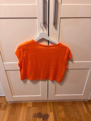 Camiseta fluida de Zara en un llamativo color naranja. Ideal para salir de fiesta. - Diseño de corte holgado. - Tejido ligero y cómodo.