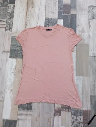 Camiseta básica de manga corta, de color rosa fucsia de Zara. Es ancha y larga. Usada dos veces. #camisetabásica #camisetazara #zara