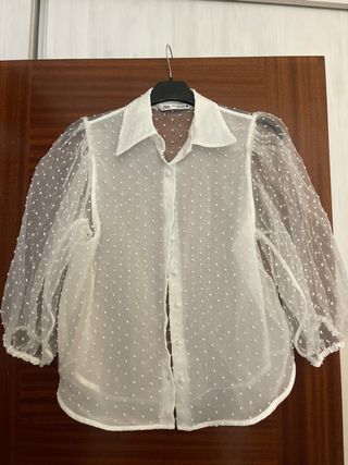 Camisa Zara plumeti transparente talla XS