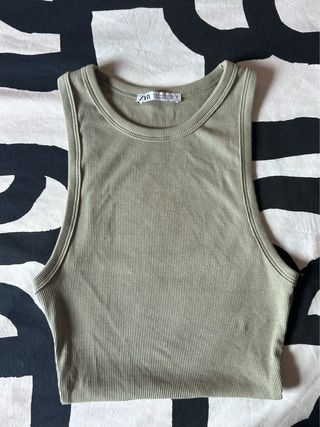 Camiseta Zara sin mangas verde oliva Talla S