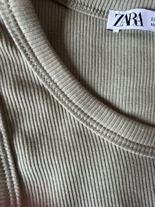 Top de Zara en color verde, perfecto para un look casual. - Diseño de canalé. - Cuello redondo. - Corte cropped.