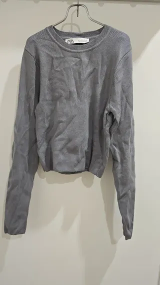 Jersey Zara gris cuello redondo manga larga