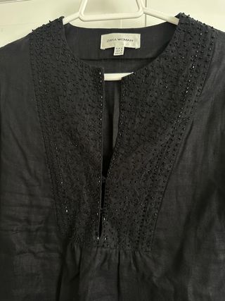 Camisa de Zara con un bonito bordado en la parte delantera y alrededor del cuello. - Diseño con escote en V. - Detalle de pedrería y bordado. - Tejido ligero.