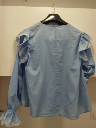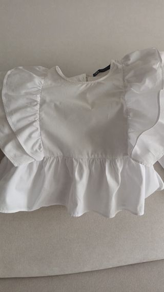Blusa de Zara talla M, es como una S elástica. - Diseño con cuello camisero. - Cierre de botones. - Detalle de volantes en los hombros.