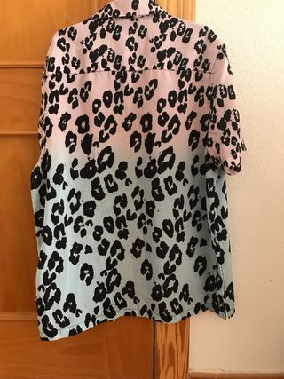Camiseta con estampado de un leopardo en la parte delantera. - Diseño llamativo con rostro de leopardo. - Cuello redondo. - Manga corta.