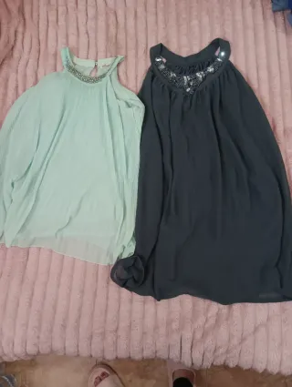 2 Camisetas sin mangas y con piedritas Cada una por separado 3€ Camiseta azul verdoso marca local talla M Camiseta negra marca vero moda talla M