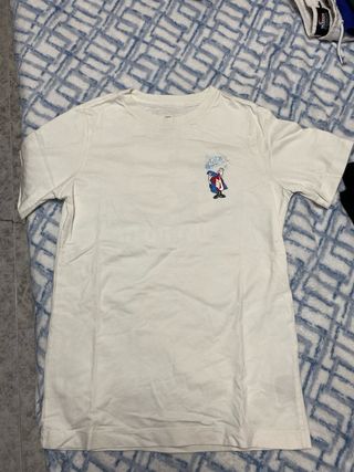 Camiseta original de la marca Nike con un diseño llamativo. - Estampado gráfico en la parte delantera. - Diseño adicional en la parte trasera. - Color blanco con detalles multicolor.