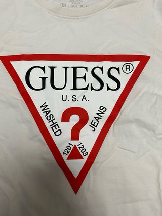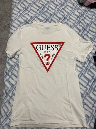 Camiseta blanca de la marca Guess, comprada en tienda oficial. - Logo icónico de Guess en el pecho. - Cuello redondo. - Manga corta.