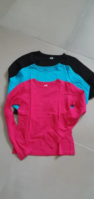 Lote 3 Camisetas Algodón: fucsia,negra y turquesa