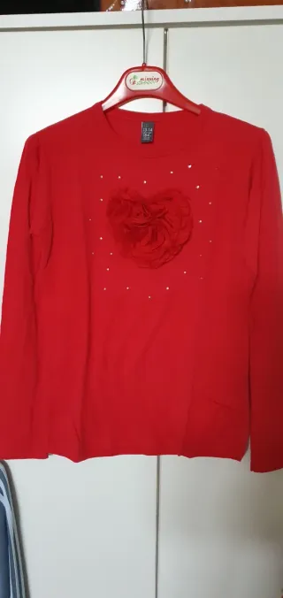 Camisetas de manga larga con un bonito detalle de corazón en relieve y pequeñas pedrerías brillantes - Diseño frontal con corazón de tela en relieve. - Adornada con pequeñas pedrerías dispersas. - Manga larga.