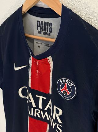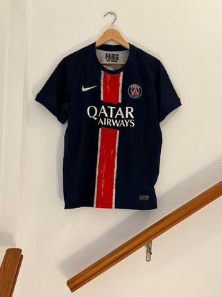 Camiseta de fútbol del Paris Saint-Germain con patrocinio de Qatar Airways. - Diseño con franjas verticales rojas y blancas. - Logo del club y swoosh de Nike. - Cuello redondo. Envío inmediato tras la compra.