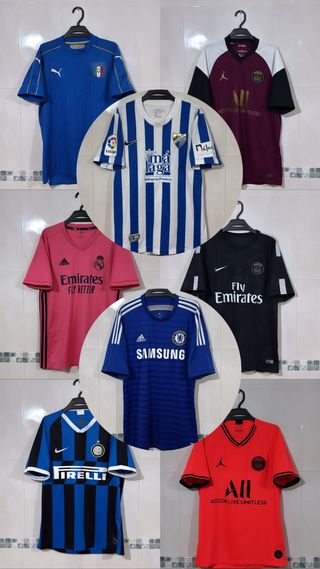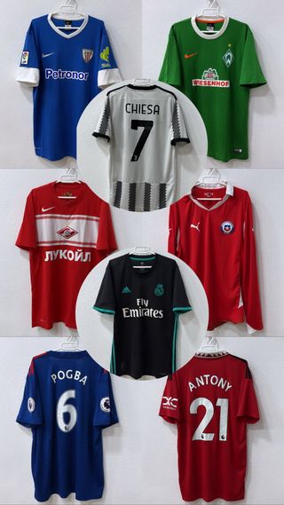 Lote camiseta de fútbol 100% originales Diferentes tallas y precios El precio del lote completo (14 camisetas) es de 370€ Precio de una camiseta sola 30€ Precio de las camisetas nuevas con etiqueta 35€ Pregunta por privado para más información