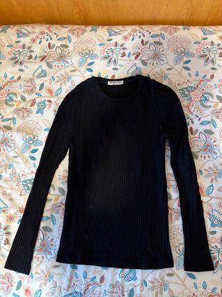 Camiseta de Pull&Bear con un diseño de canalé. - Manga corta. - Cuello redondo. - Tejido elástico.