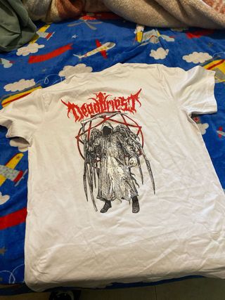 Camiseta original de In Flames, una pieza con carácter y estética totalmente metal. Color negro envejecido por el paso del tiempo, creando un efecto “washed” muy atractivo y auténtico, imposible de replicar en prendas nuevas. Print frontal potente y gráfico trasero con arañazos, detalles que la convierten en una camiseta especial dentro del universo de band tees. No presenta rotos ni daños: solo el desgaste natural del color, propio de una prenda con años y personalidad. Talla XL Medidas: – Hombros: 54 cm – Axilas: 59 cm – Largo: 72 cm Perfecta para fans de la banda, coleccionistas o para quien busca una camiseta con alma vintage