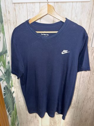 Camiseta de manga corta de la marca Nike. Es de color azul. - Cuello redondo. - Logo de Nike bordado en el pecho.