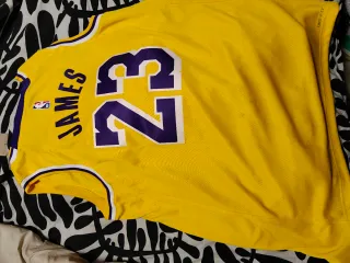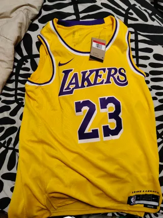 Camiseta oficial de los Lakers con el número 23 de James. Sin uso conserva etiqueta - Color amarillo y morado. - Tejido transpirable Dri-FIT.