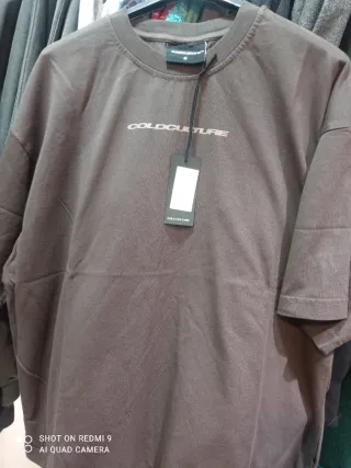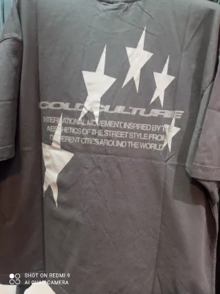 Camiseta de manga corta con estampado de estrellas y texto. -Talla S. - Estampado frontal con COLDCULTURE y texto inspiracional. - Diseño de estrellas beige sobre fondo marrón.
