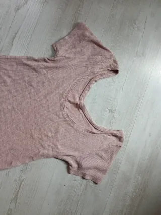 Camiseta corta de manga corta con un diseño de canalé. - Cuello en forma de U. - Tejido elástico.