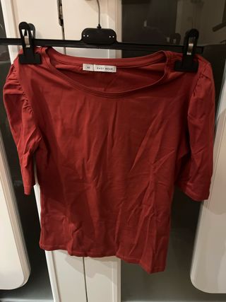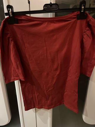 Camiseta elegante de manga larga. - Diseño con hombros abullonados. - Cuello redondo.