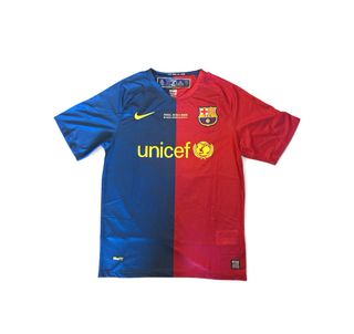 Camiseta del FC Barcelona, edición especial Final Roma 2009. - Diseño dividido en azul y rojo. - Logo de Unicef en amarillo. - Escudo del FC Barcelona. - Tecnología Nike Fit. Sin parche de la champions