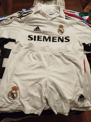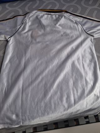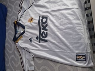 Camiseta de fútbol retro del Real Madrid. Y no hacer caso a precio de la descricpion se negocia precio por privado - Diseño clásico en color blanco. - Logo de Adidas bordado. - Escudo del Real Madrid. - Detalle de franjas en cuello y mangas.