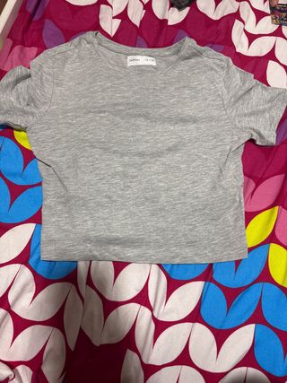 Camiseta corta de la marca Leftie. - Color gris jaspeado. - Corte crop top. - Tejido suave y ligero.