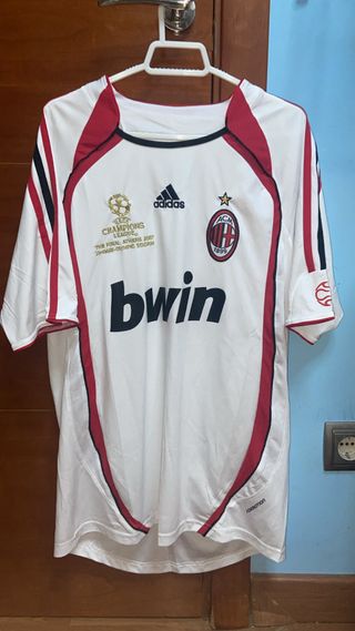 Camiseta de fútbol del AC Milan, edición especial de la final de la Champions League de 2007. - Diseño conmemorativo de la final de Atenas 2007. - Logo de Adidas y escudo del AC Milan. - Patrocinio bwin en el frontal. - Tecnología Formotion para mayor comodidad.