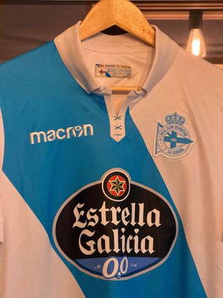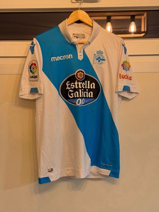 Camiseta del Real Club Deportivo de La Coruña. Temporada 2017/2018, segunda equipación con la bandera gallega. Pieza unica de coleccionismo, con el dorsal de Carlos Fernandez (ligeramente descolorida). 100 por 100 original, de la tienda oficial del Depor