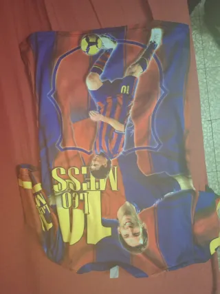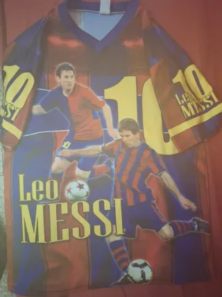 Camiseta con estampado de Leo Messi. - Diseño con el número 10. - Imagen de Leo Messi jugando. - Colores rojo y azul.