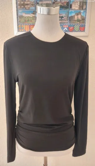 Camiseta de manga larga con un diseño drapeado en la cintura. - Tejido suave y elástico. - Corte moderno y favorecedor.