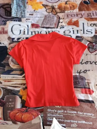 Camiseta corta de manga larga en color naranja. Detalle de cremallera frontal. Talla S. - Cuello alto. - Cremallera metálica con tirador. - Tejido elástico. Le quité la etiqueta y no me acuerdo de dónde era. Precio negociable.