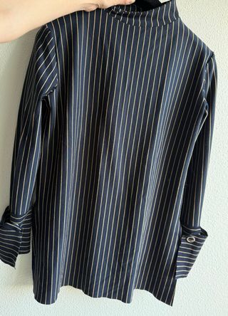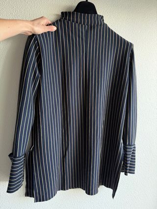 Camiseta semi cuello,manga larga,adorno volante en hombro,rayas. Talla- 42/40 Precio- 4 euros