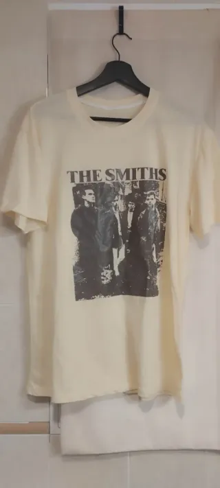Camiseta con estampado de The Smiths. - Diseño frontal con imagen y logo de la banda. - Color base amarillo pálido.