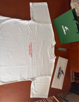 Camiseta de la marca Scuffers, nueva y sin usar, con las etiquetas y bolsas de su compra original.