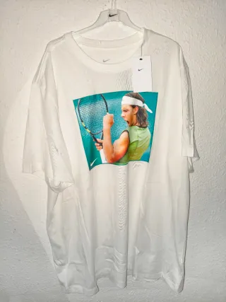 Camiseta de manga corta de la marca Nike con un diseño gráfico. - Talla XXL. - Estampado de Rafael Nadal. - Cuello redondo.