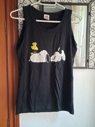 Camiseta sin mangas para mujer con un divertido estampado de Snoopy. Perfecta para un look casual. - Diseño de Snoopy durmiendo. - Tirantes anchos.