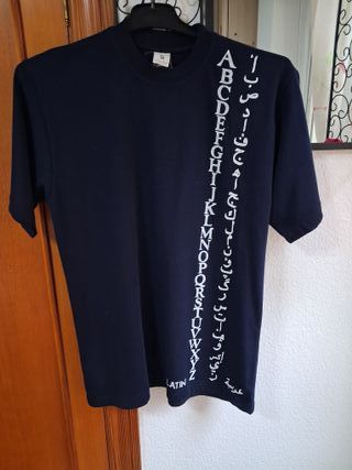Camiseta de manga corta con un diseño original que combina el alfabeto latino y árabe. - Diseño impreso en blanco. - Cuello redondo.