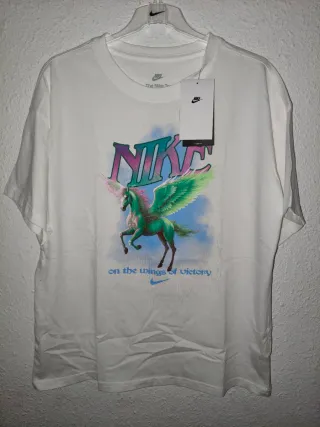 Camiseta de manga corta con un diseño gráfico inspirado en el mito de Pegaso. - Estampado frontal con el logo de Nike y la frase on the wings of victory. - Motivo de Pegaso alado con alas en degradado de colores. - Cuello redondo.