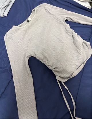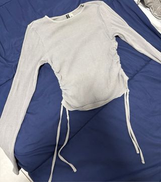 Camiseta de manga larga con un diseño moderno y favorecedor. Perfecta para un look casual. - Tejido acanalado. - Detalle fruncido lateral con cordón ajustable. - Cuello redondo.
