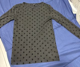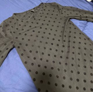 Camiseta de manga larga con un diseño de lunares. - Tejido ligero y cómodo. - Estampado de lunares negros. - Transparente.