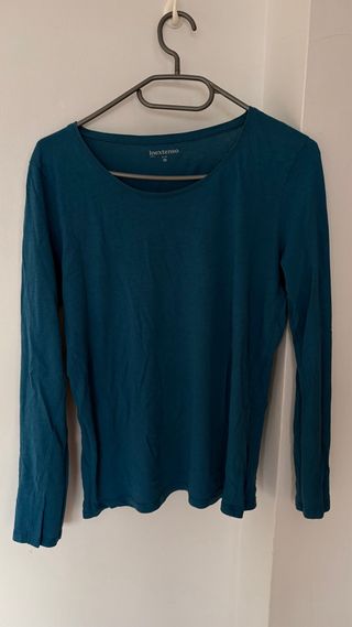 Camiseta de manga larga para mujer. - Color verde azulado. - Talla M (38/10).