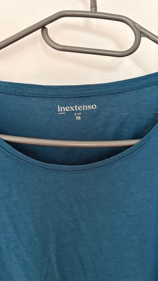 Camiseta de Zara Basic, línea Denim Couture. Fabricada en Portugal. - Talla XS. - Color azul marino