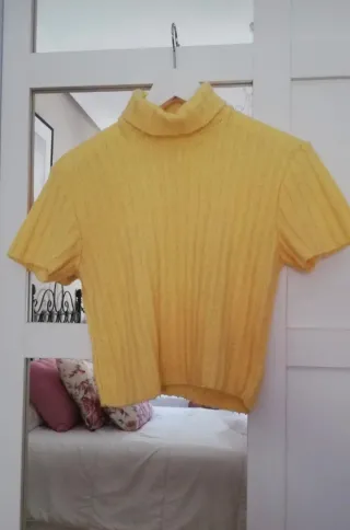 Top de punto amarillo cuello alto