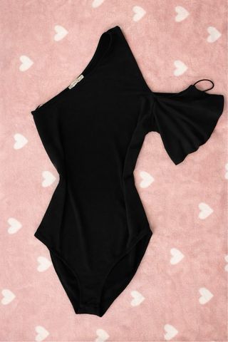 Body asimétrico de Zara en color negro. Diseño moderno y elegante. - Corte asimétrico. - Manga acampanada. - Detalle de tirante en la manga.