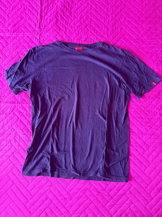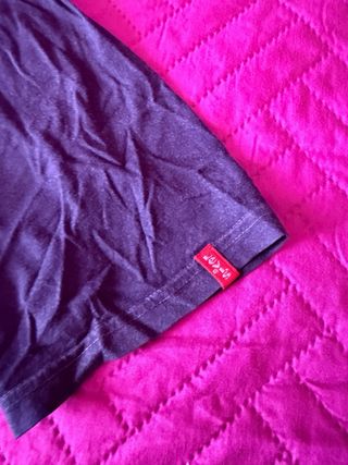 Camiseta de manga corta Talla L Marca DC Medidas de largo 75 cm y de axila a axila 59 cm Bolsillo pequeño en la parte delamtera Tiene una mancha de lejía en la parte trasera, se ve en la última foto