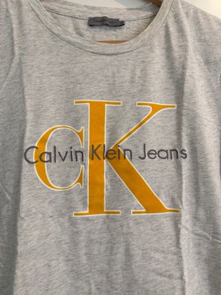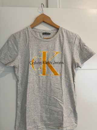 Camiseta de manga corta con el logo de Calvin Klein Jeans. - Diseño con logo grande en color naranja. - Tejido jaspeado gris