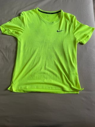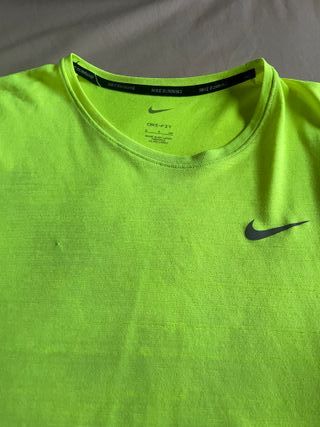Camiseta técnica Nike de manga corta, ideal para running y entrenamiento. Diseñada con la tecnología Dri-FIT para mantenerte seco. - Tejido ligero y transpirable. - Logo de Nike en el pecho.